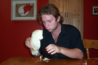 Regardless, I'm currently at 34 shows and will continue see plays today and tomorrow. I'll still hit the 40+ mark, but will nonetheless fall short of my lofty goal. As a result, the final entry on this blog will be a picture of me eating a hat (albeit one that may be more "pastry-based" than the typical piece of haberdashery). I'm not sure when I'll have time to bake a cake/pie hat, given that my defense is next week, but it will be within the next fortnight.
